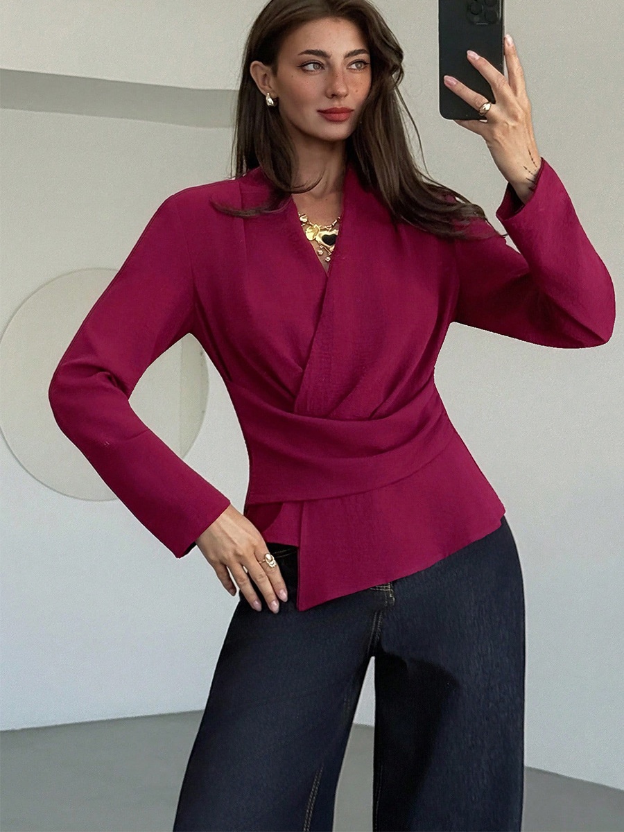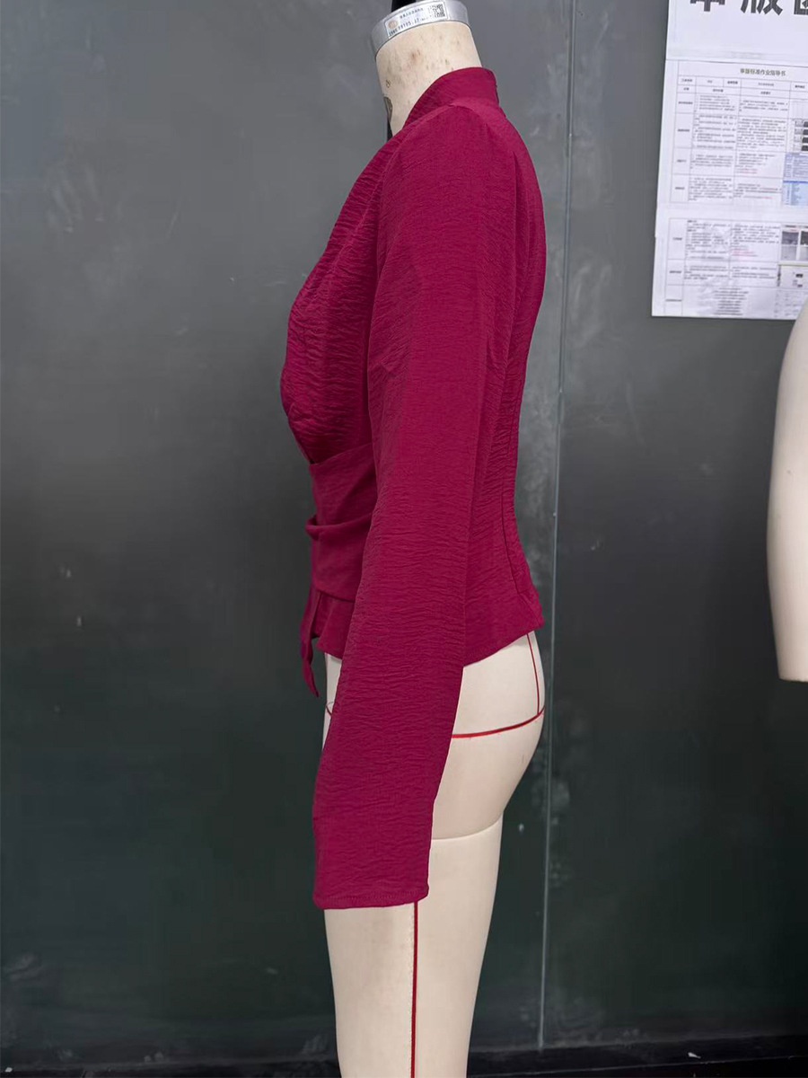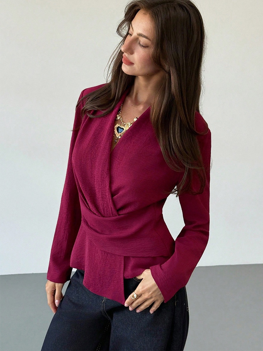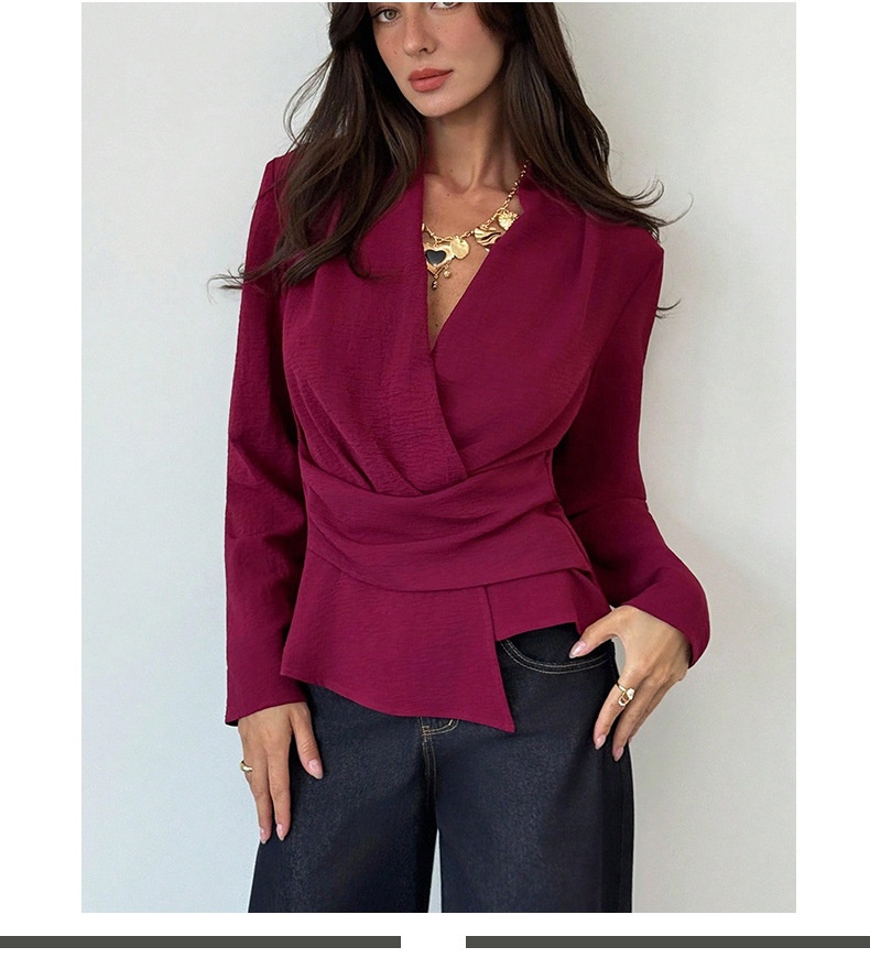 French Style Solid Color Long Sleeve Shirt Waist Slimming