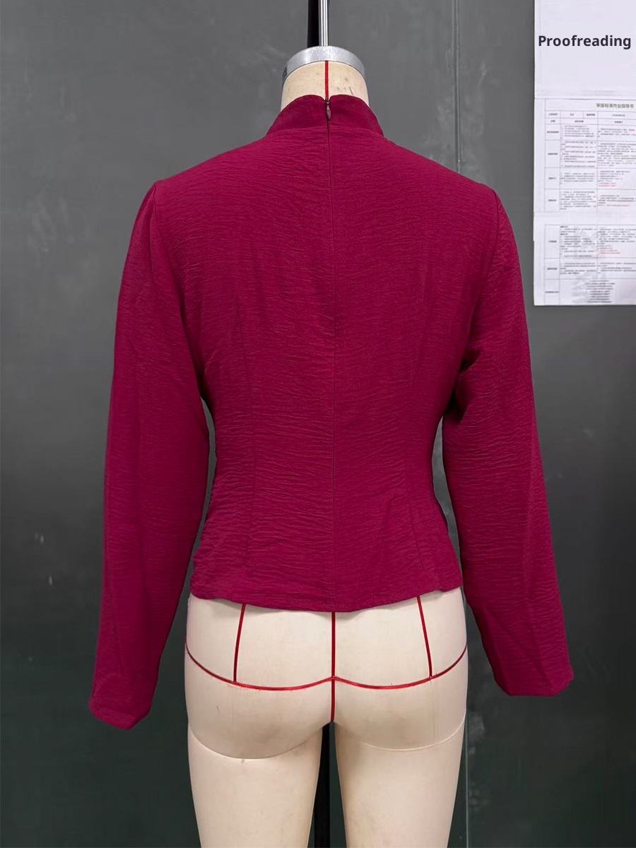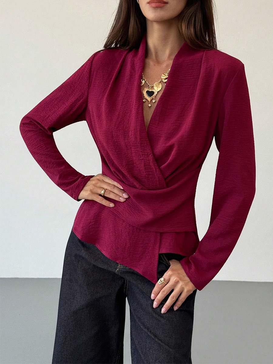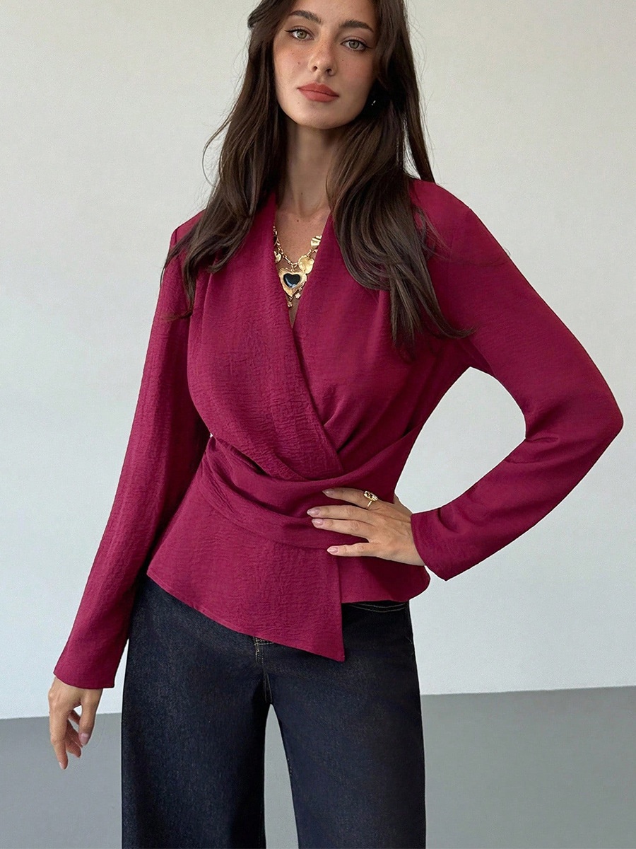 French Style Solid Color Long Sleeve Shirt Waist Slimming